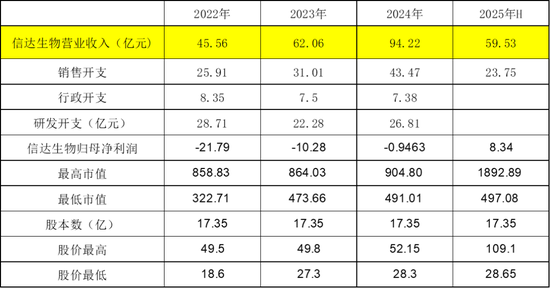 图表1:2022-2024年信达生物主要经营数据和市值波动