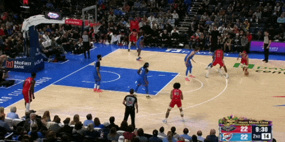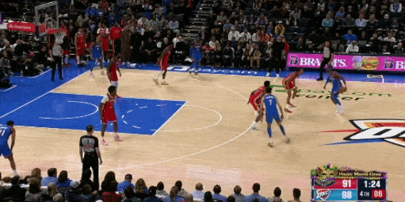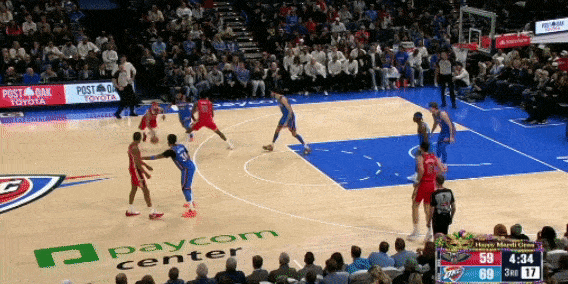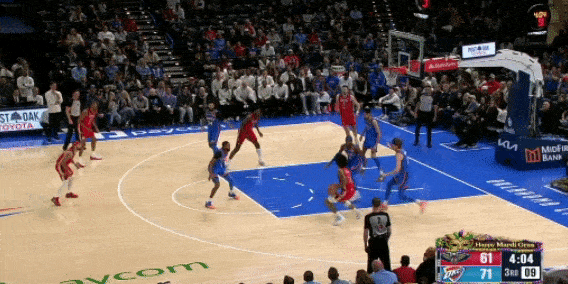 米西的掩护质量很高,下顺的时机选的也很巧妙。而且,更重要的是,他不需要在篮底接球才能终结,在三分线附近接球后就能冲起来了。