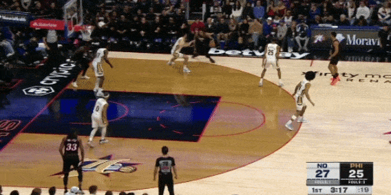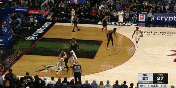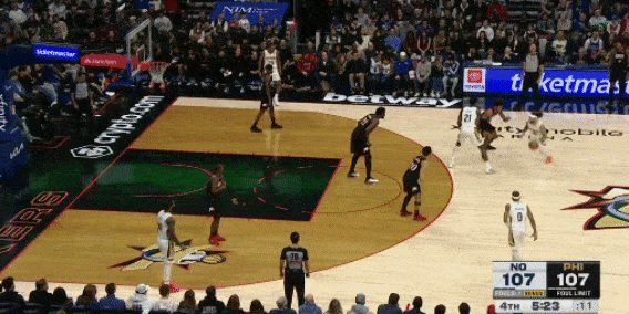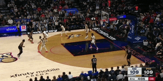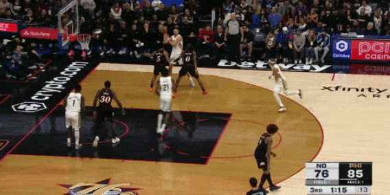 米西的护框很出色,新秀赛季和本赛季场均都能送出1.4次封盖。他的横移出色,开云体育在协防时能迅速到位,封盖时跳的贼高,封盖马克西的那一球,甚至头都超过篮筐了(下图3)