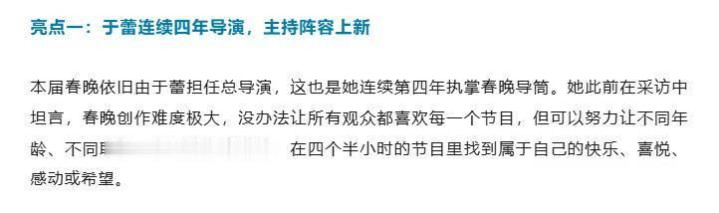 总导演照旧于蕾,她还是络续四年肃穆这个神色,近十年里莫得其他东谈主连任这样屡次,她从2011年担任撰稿东谈主起步,到2023年接办总导演职务,发展旅途很明确:摆布新期间、敷陈传统习尚、招引年青不雅众,主合手声势中,39岁的刘心悦初次登上主会场舞台,接替龙洋和马凡舒的位置,成为第三位新晋女主合手东谈主,央视当今明白取舍“稳中带活”的战略,由资深主合手东谈主镇守,新东谈主加入增添清新感,四个分会场辞别由朱迅和杨帆等东谈主肃穆,场地特质被特意杰出,不仅仅浅近凑吵杂,而是信得过想让不雅众感受不同地区的过年氛围。