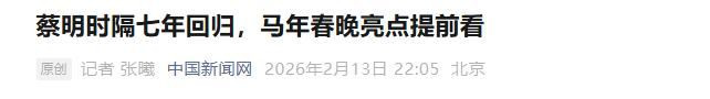 2026年2月13日,央视公布了本年春晚的五大看点,这时离大除夕只剩两天,第五次带妆彩排刚限度,这一届春晚有些相当,因为前一年年底“春节”被聚会国列入非遗名录,这是申遗得手后的第一场央视春晚,官方将晚会定位提得很高,说它不仅是一场联欢晚会,更是全球华东谈主的文化庆典,阑珊一百个国度安排了转播,边界照实比往年更大。