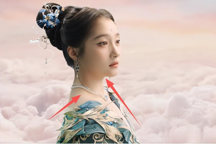佟丽娅动作领舞者,自身五官就横暴,在糊眼睛的磨皮和殊效下,耸起来的肩膀、娇傲的嘴脸,显的太突兀和烦恼忘形了。