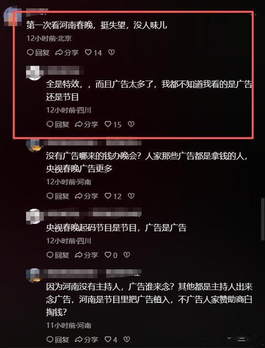 网友吐槽说念:“第一次看河南春晚,挺失望的,没东说念主味儿。”