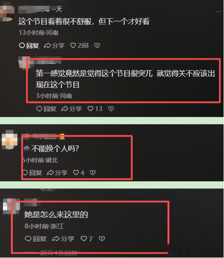 还有的暗示,为什么不换个东说念主,看着她在这个节目上就突兀,不应该来。