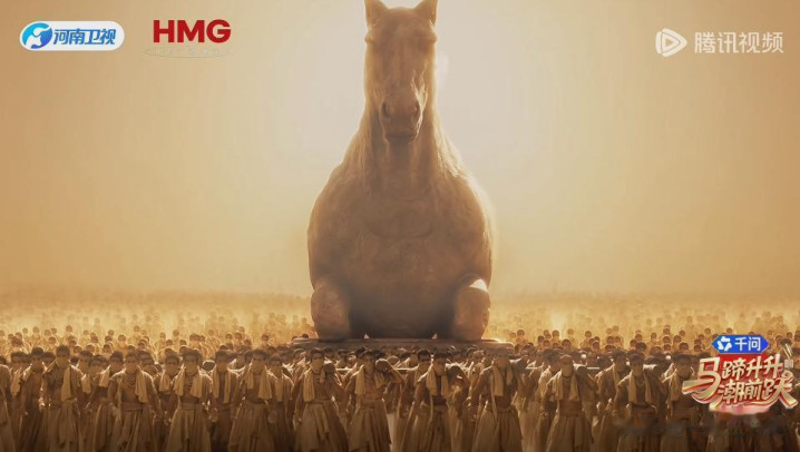 2026年的生肖是马,它的开场节目,即是杨丽萍编导的《万马奔腾》,世东说念主肩膀扛着马的画面,不太清楚。