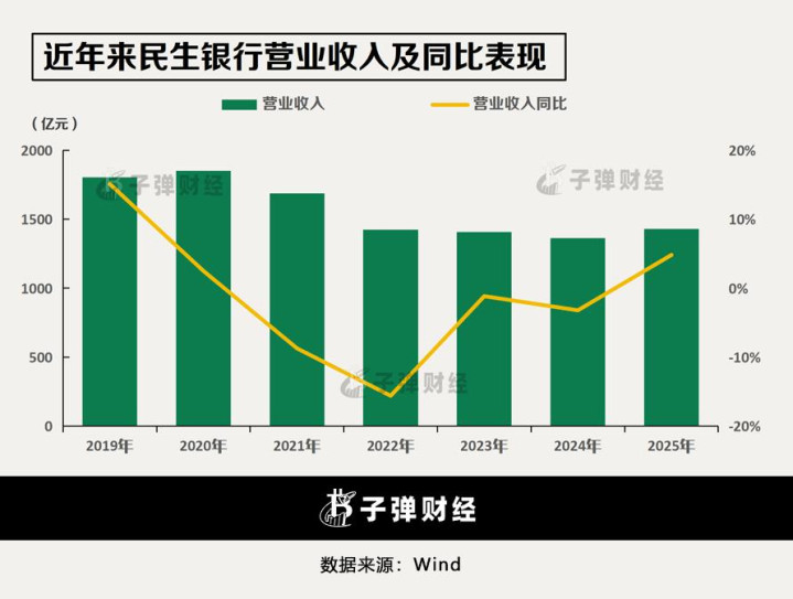 2025年,民生银行贪图迎来进犯改动,营收迎来连降四年后的初次正增长。
