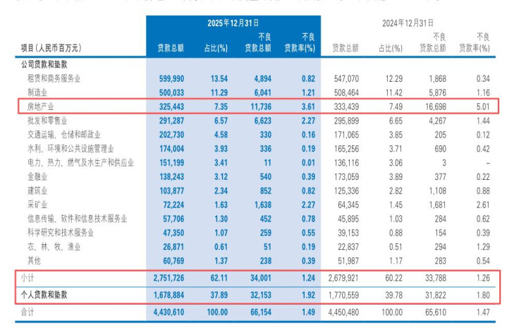 限制2025年末,房地产不良贷款余额为117.36亿元,不良贷款率仍达3.61%,远高于全行平均不良水平。