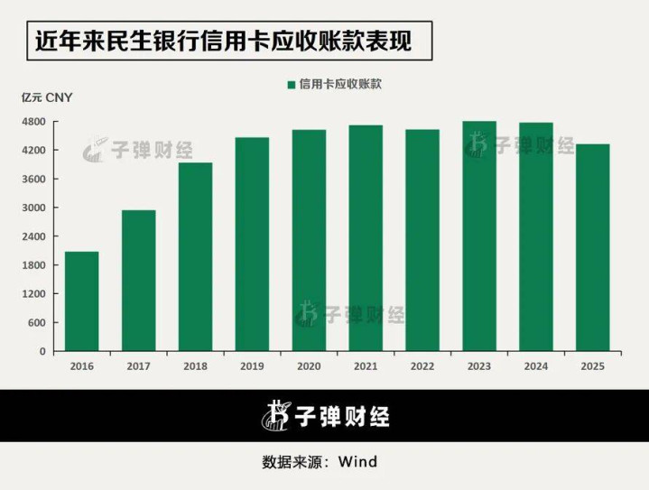 年报露出,限制2025年末,民生银行信用卡透支4324.60亿元,较2024年大幅减少 447.87亿元,降幅9.38%。
