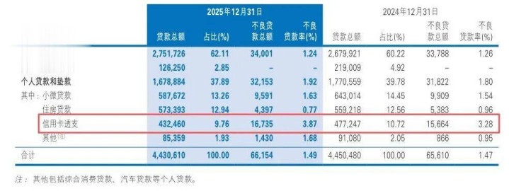 不良方面,限制2025年末,民生银行信用卡不良贷款率高达3.87%,较上年末大幅高潮0.59个百分点;不良贷款金额达到167.35亿元,较上年末增多10.71亿元。