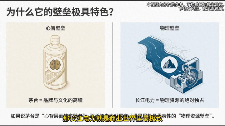 {jz:field.toptypename/}一分钟说清这么认为的中国公司护城河排名第二名长江电力,为什么它的壁垒极具特色?茅台=品牌与文化的高墙,长江电力=物理资源的绝对独占。如果说茅台是"心智层面,那长江电力就是商业世界里最极致表性的"物理资源壁垒"。
