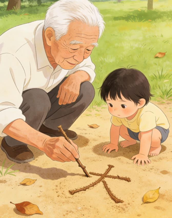 那时候家里穷,买不起纸笔,爷爷就用树枝在地上写,我蹲在操纵随着学。夏天的傍晚,蚊子嗡嗡地叫,我被咬得满腿是包,却舍不得离开。
