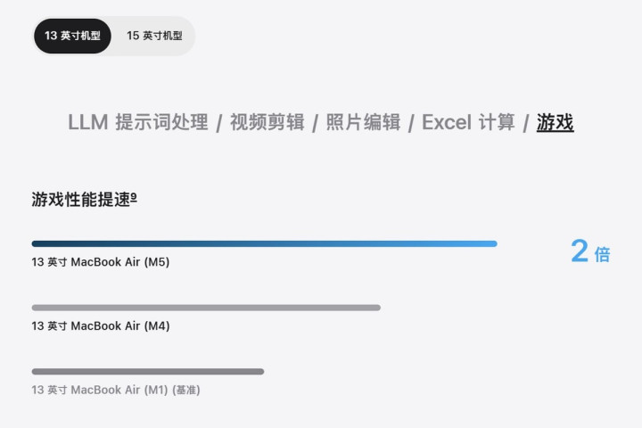 其他方面,苹果MacBook Air的变化并不大。可选心境有天蓝色、银色、星光色和午夜色,必定有一款是顺应你的。这代居品在细节上也没什么调遣,不像M3到M4那样作念过微调,给东说念主嗅觉就像是胜利把M4芯片换成了M5。