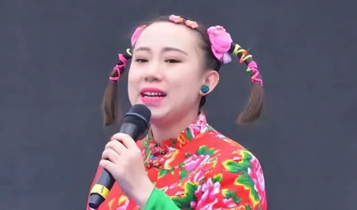 网上曝光的视频里,她穿着平凡的衣服,站在爽快的舞台上,唱着熟练的二东谈主转。