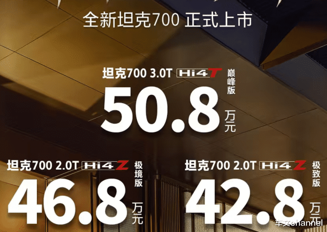 典型比如长城汽车,短短几天时间,照旧有多款新车上市。4月20日,全新坦克700上市,新车推出三款设置,官方相通价为42.8万元至50.8万元。
